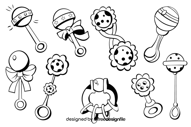 This free Baby Rattle black and white vector graphic is designed by Freedesignfile and can be used for personal as well as business & commercial purposes with attribution link back to Freedesignfile.com Learn more