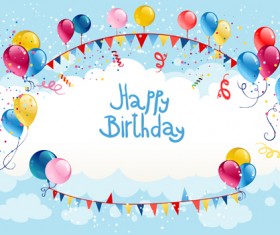 Happy birthday festive background with balloon and colored ribbon vector