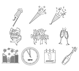 Happy New Year clipart set black and white vector